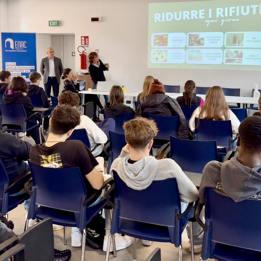 La seconda parte della presentazione, sviluppata dalla nostra responsabile comunicazione Silvia Bevilacqua, si è configurata come un vero e proprio briefing con studenti e studentesse dell'Istituto Canossiano, con l'obiettivo di condividere spunti di riflessioni e desiderata del Consiglio di Bacino Verona Nord. Il progetto assegnato alle due classi terze prevede la realizzazione di un video che risulti coinvolgente per i loro coetanei. Saranno gli studenti stessi ad identificare il contenuto del messaggio da veicolore e a scegliere la modalità narrativa per rappresentarlo.